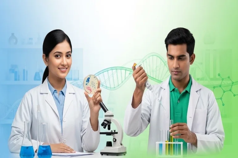 Students completing M.Sc. in Medical Laboratory Technology (M.Sc. MLT) in Microbiology can pursue research careers. They can work in research laboratories focusing on microbial studies, vaccine development, and public health research. Academic opportunities include teaching positions in colleges and training institutes.